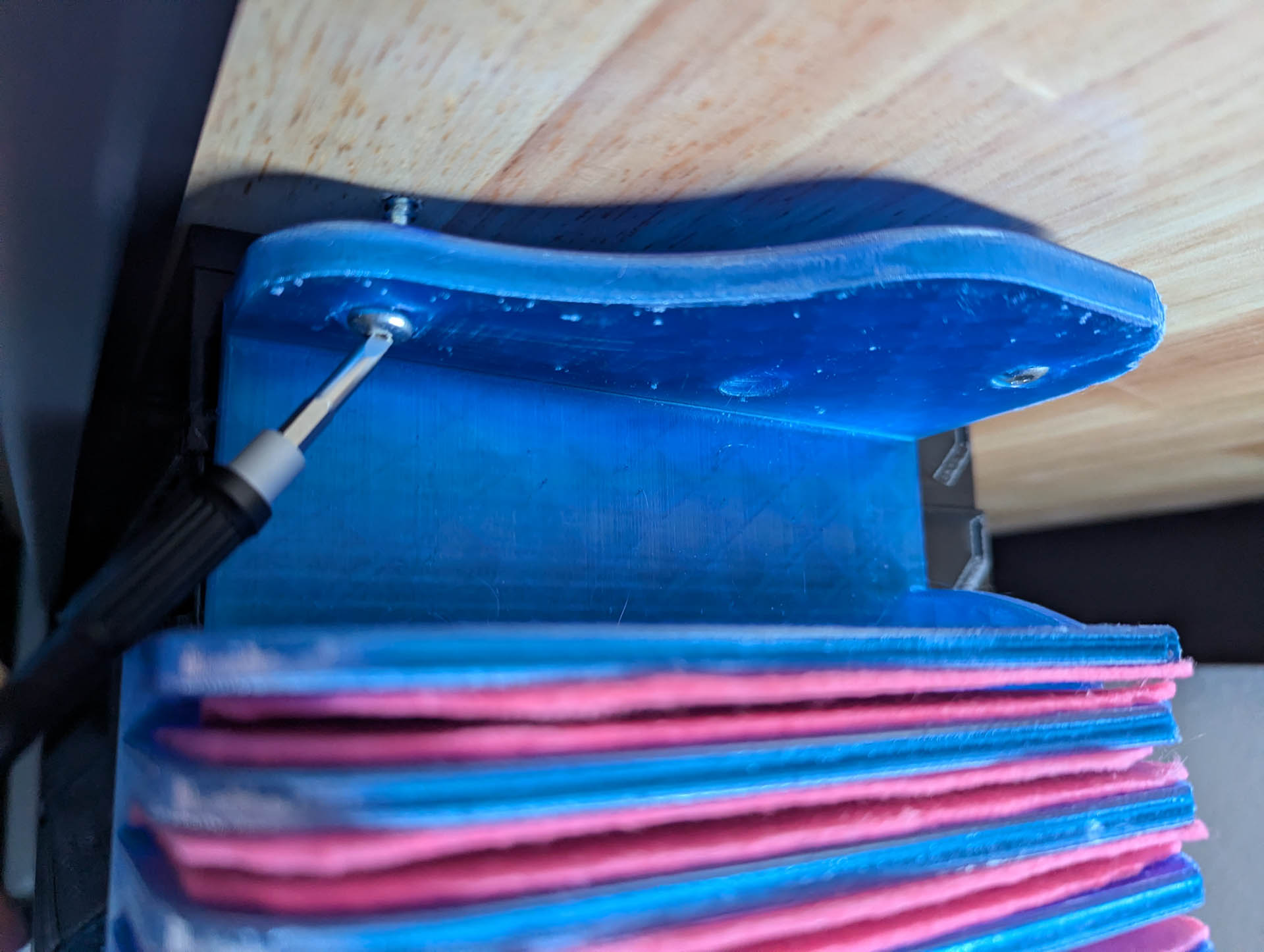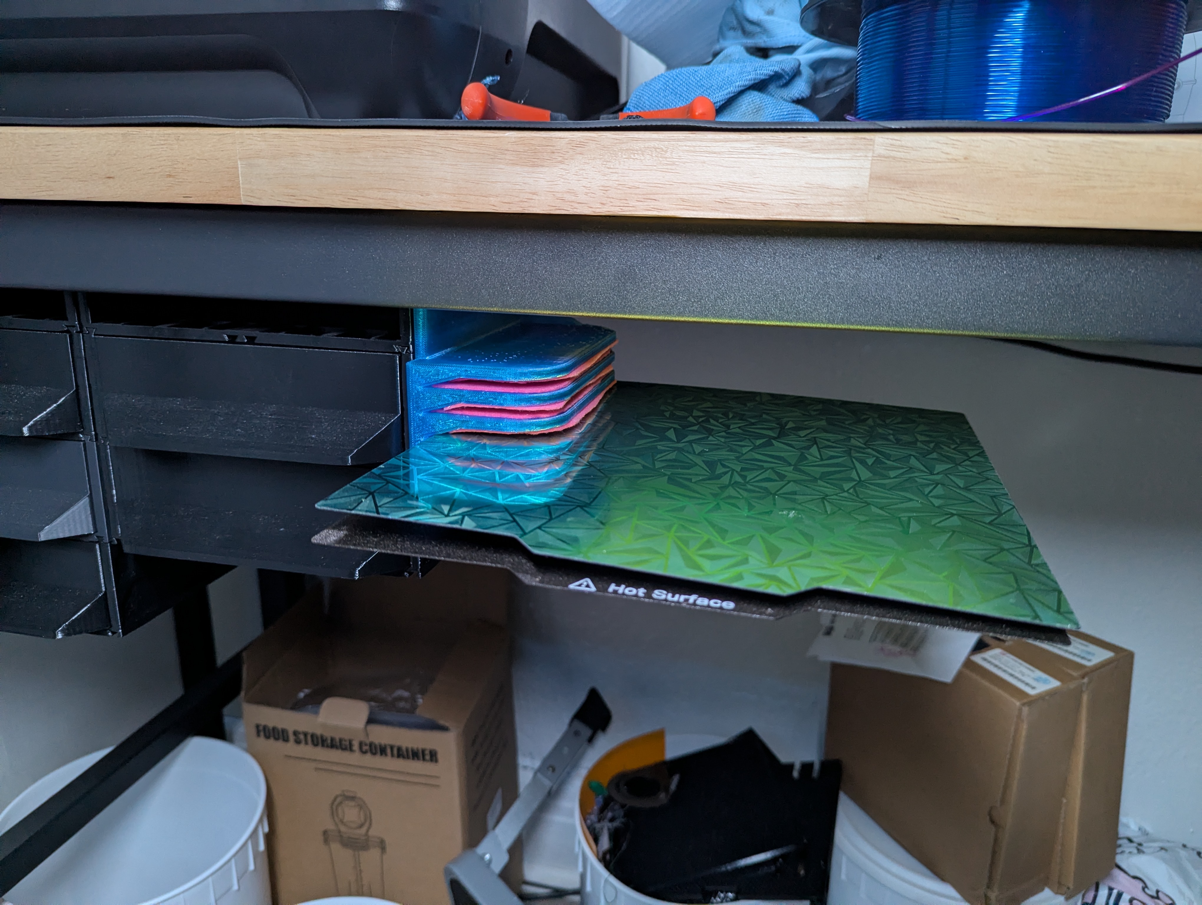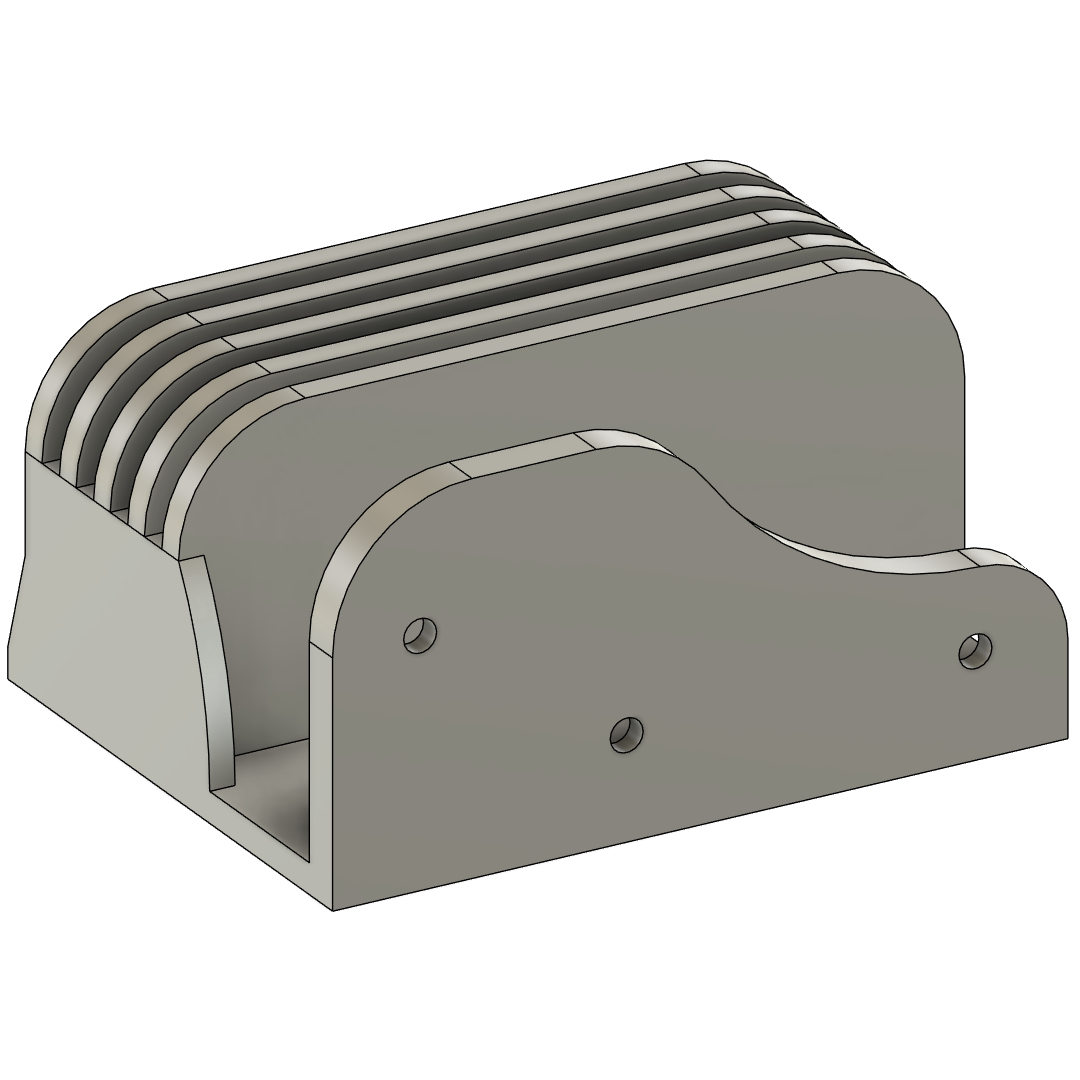 I wanted to be able to access it easily from my workbench, so I designed it to be screwed under the tabletop itself.