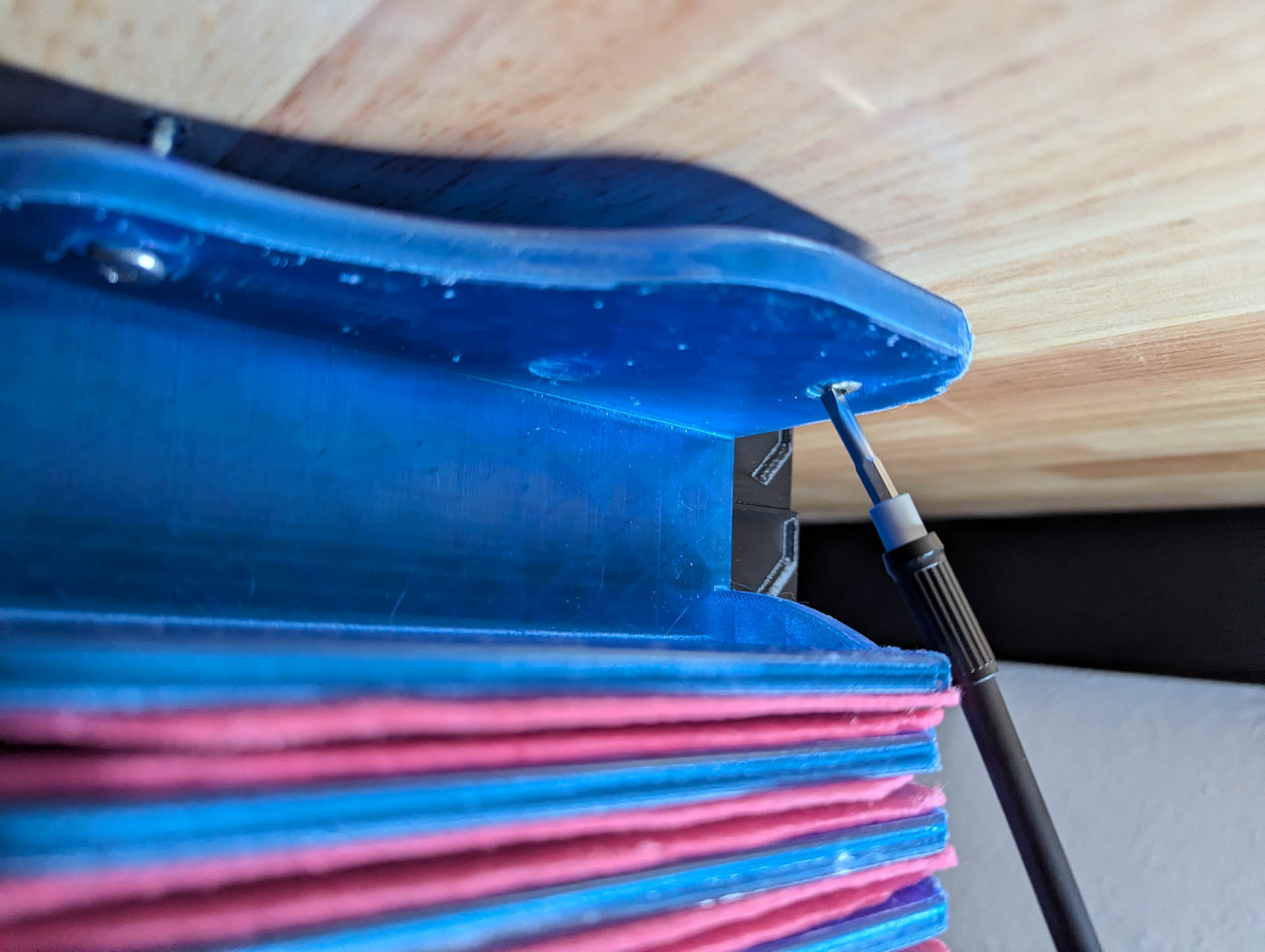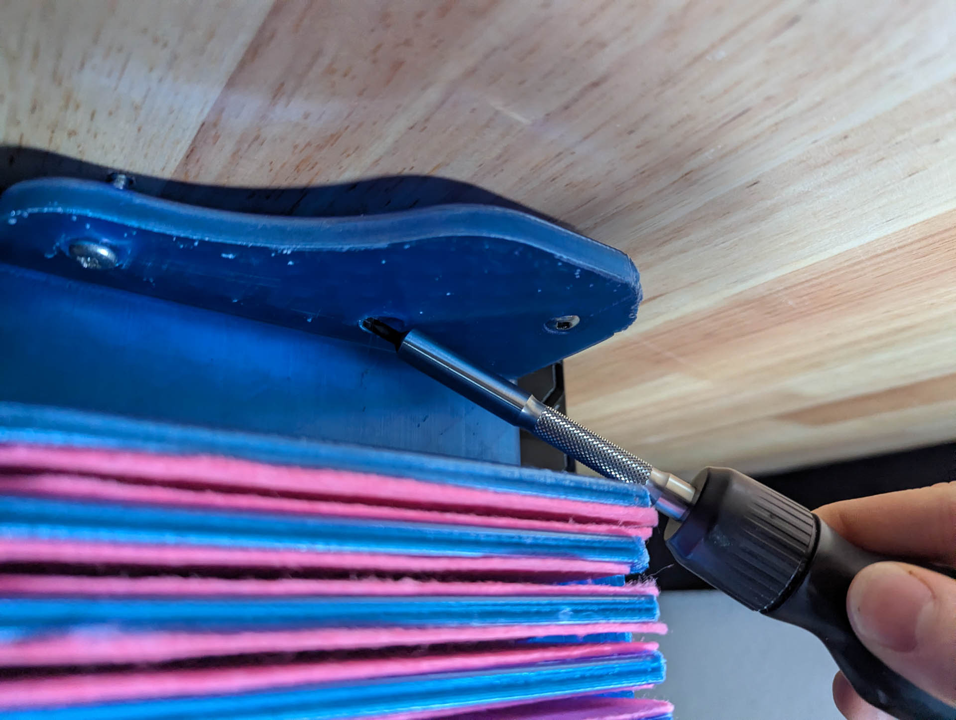 The use of a screwdriver/a drill is obviously required for the installation ,but I guess it's not something I thought about sadly.I can't screw it all the way, even trying with a fancy flexible screwdriver did not work :( I think the only modification I would do is a hole through all shelves to install it and thinner walls everywhere.