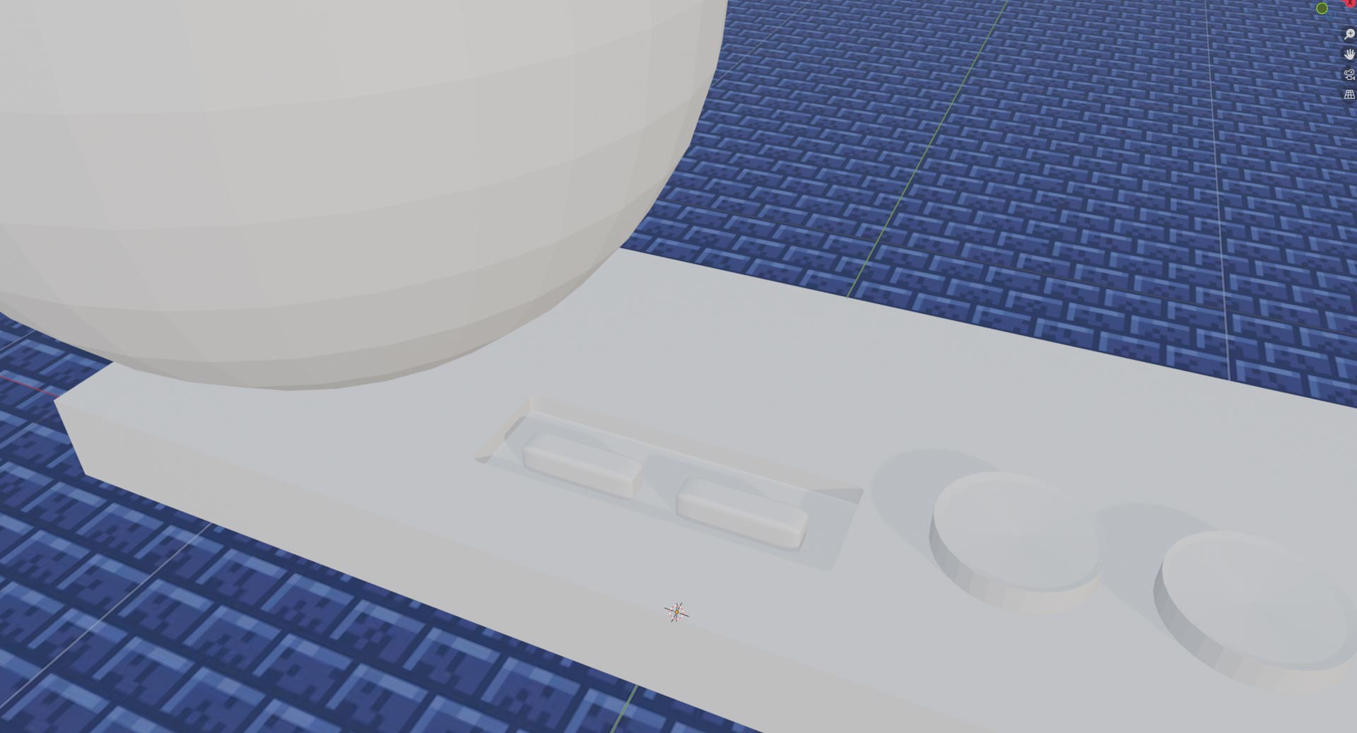 Using a sphere on these buttons, I used the same Boolean-Difference setting from earlier.
