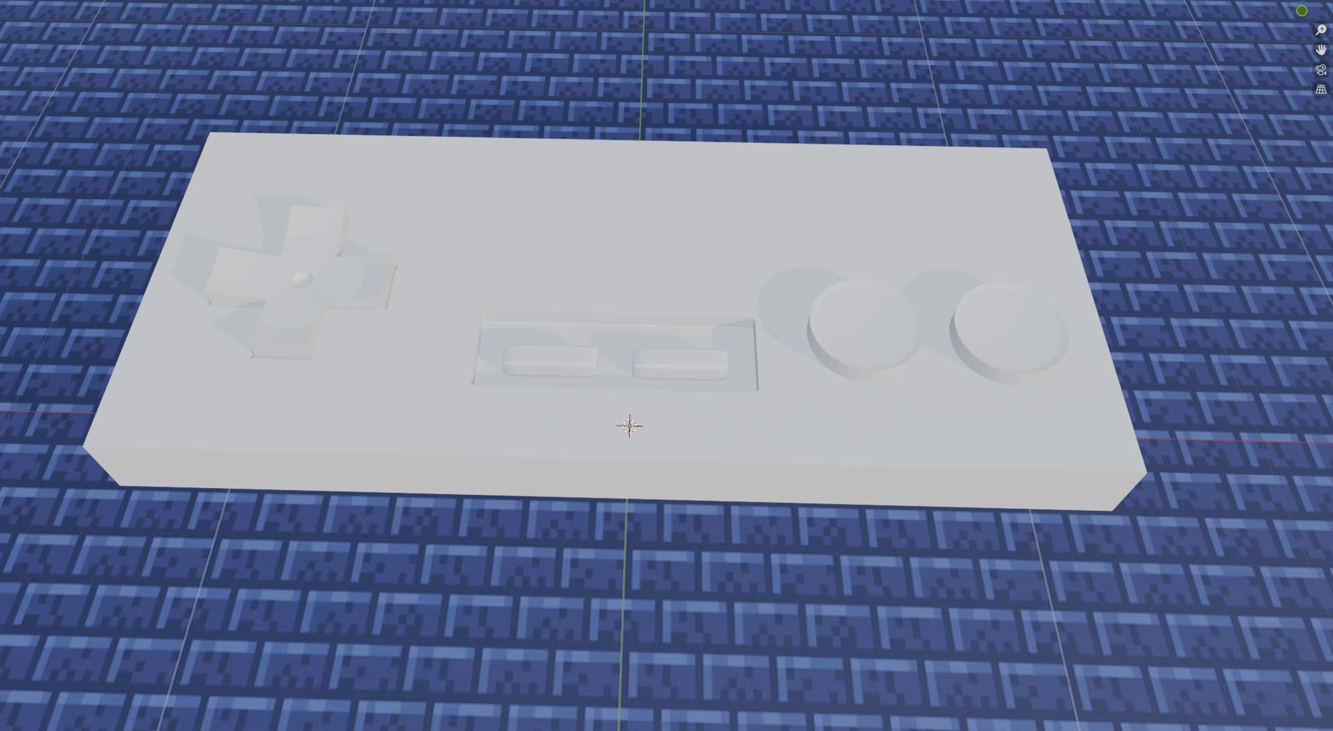 Using Boolean-Difference, I created a negative place using the 3 shapes After,I added the cross, start/select buttons and A & B, using cylinders and boxes
