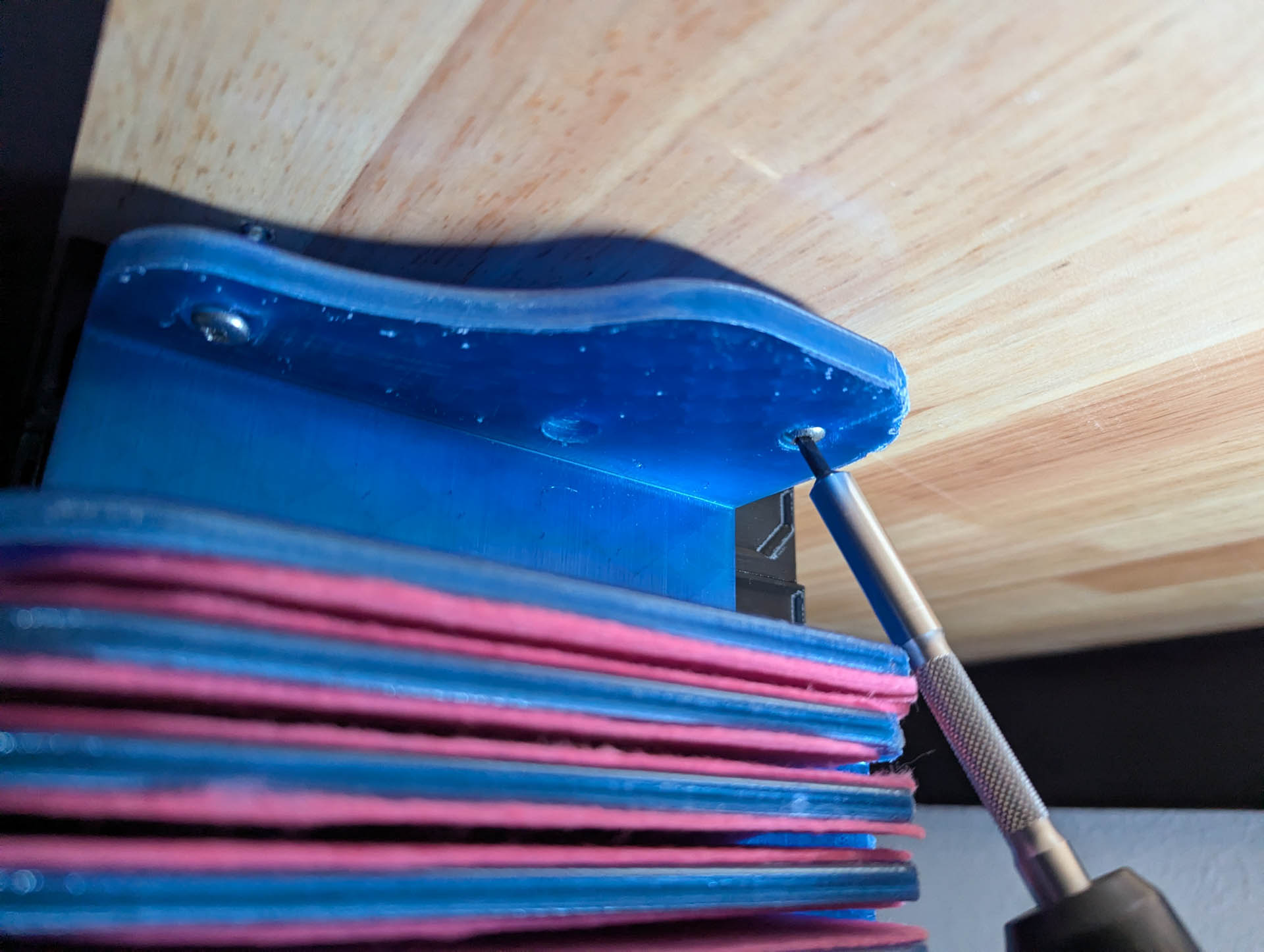 I wanted to be able to access it easily from my workbench, so I designed it to be screwed under the tabletop itself.