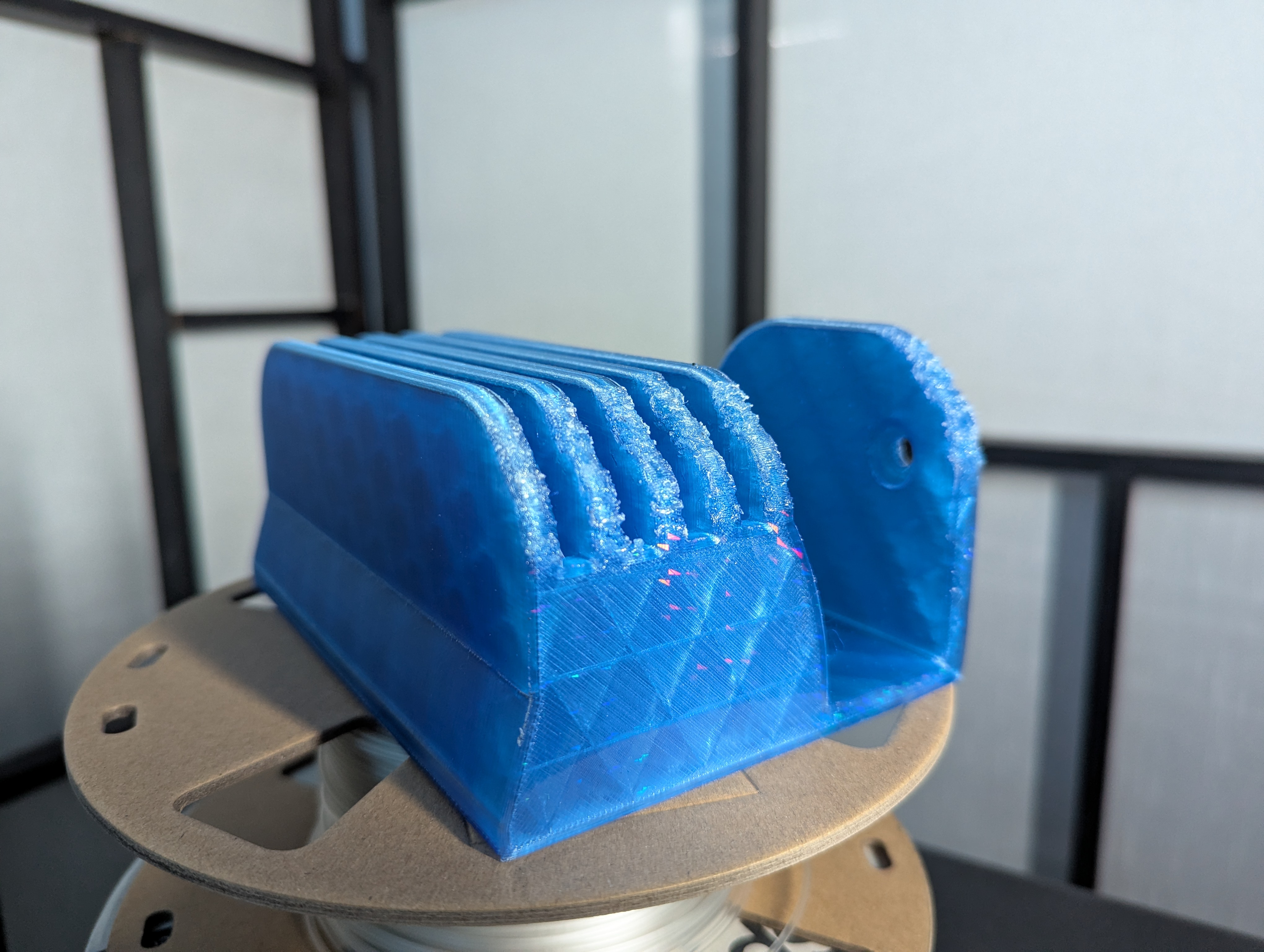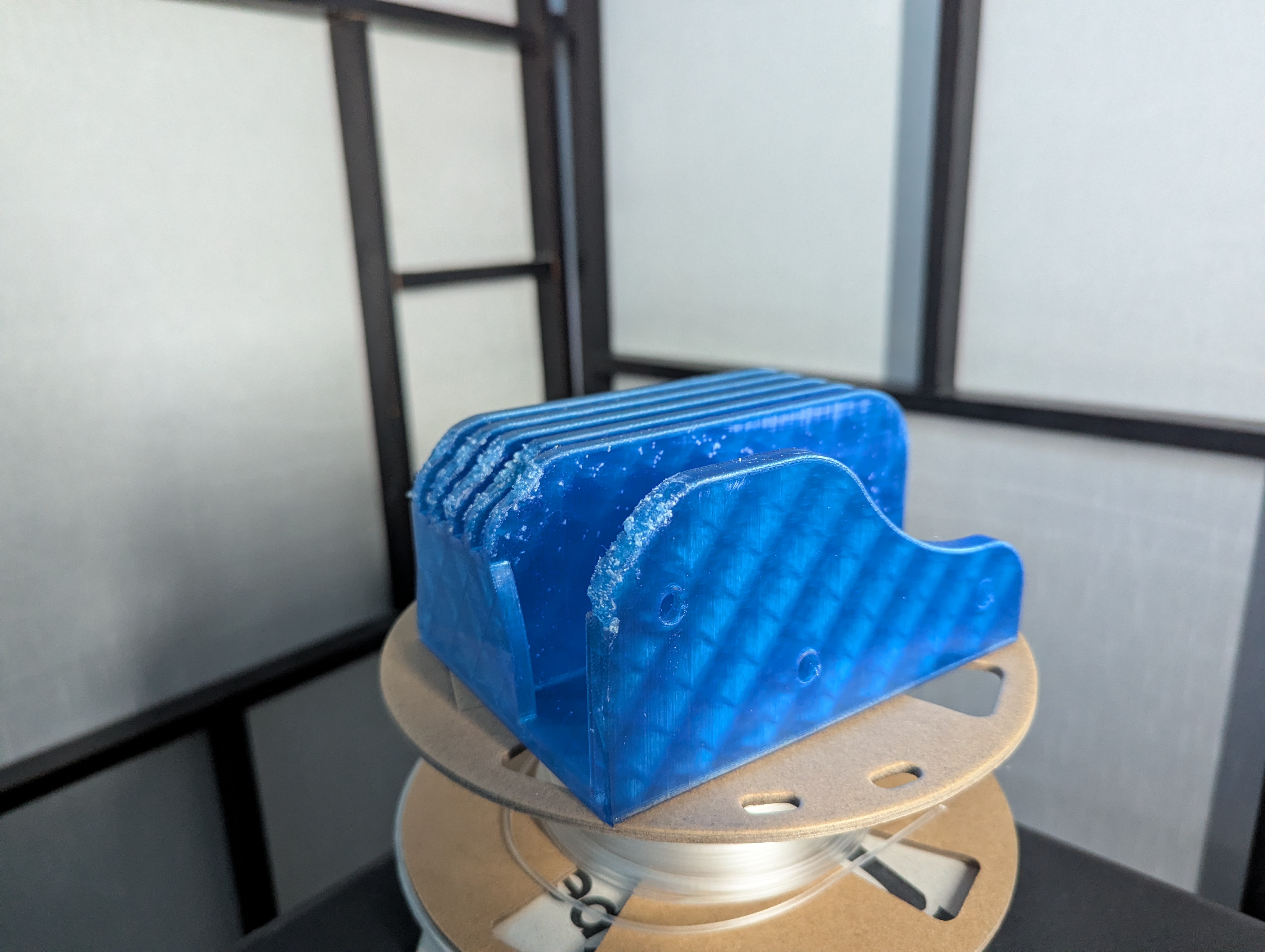 I used Transparent Blue PETG and it took 7h55 to print!