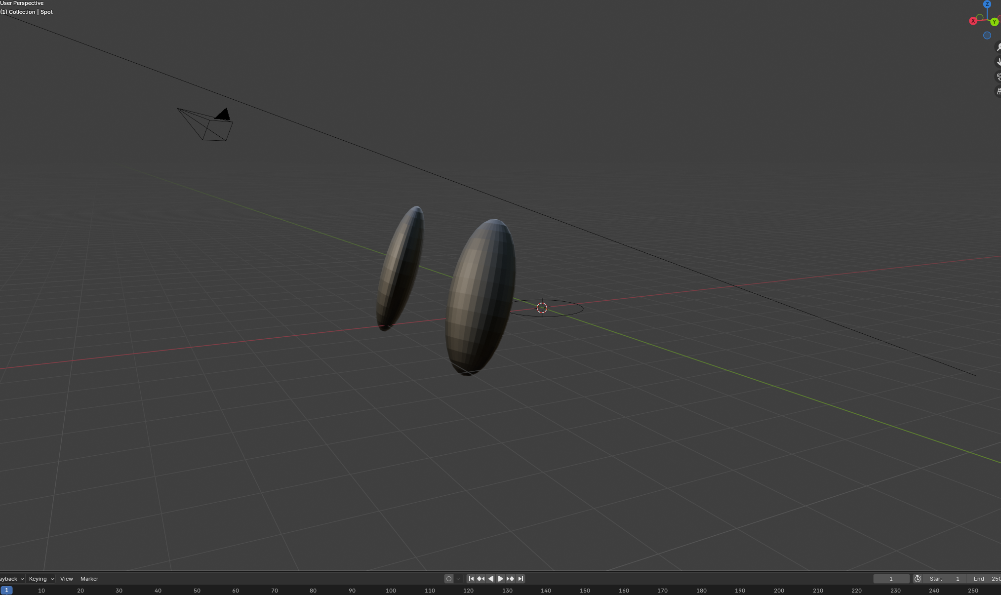 For the eyes, I created 2 spheres that I "squished down" and made their materials black
