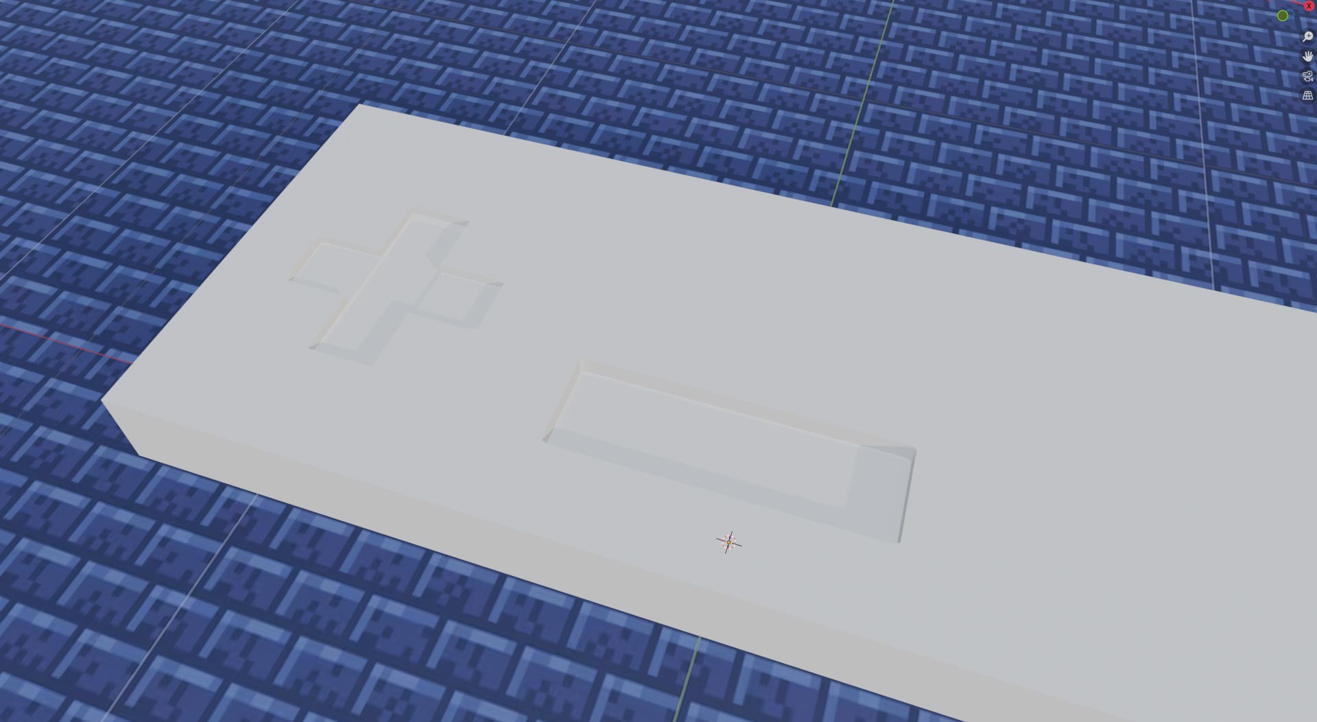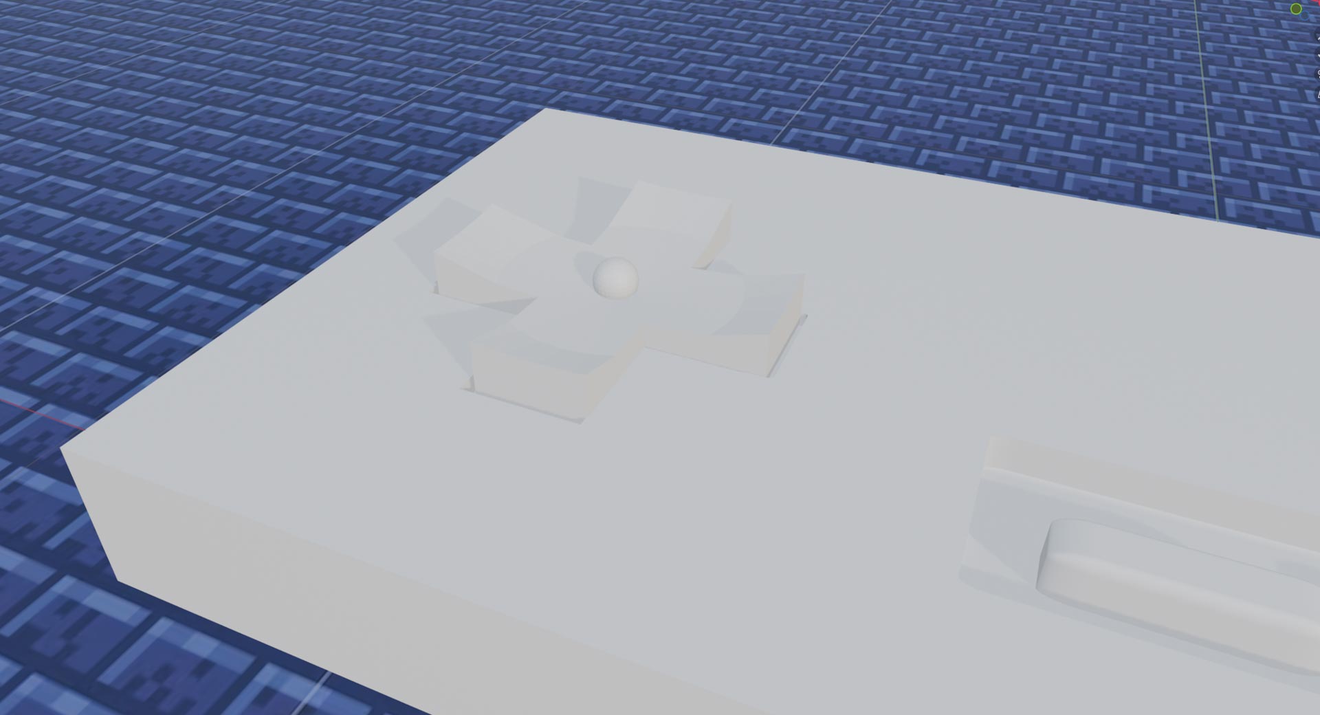Using Boolean-Difference, I created a negative place using the 3 shapes After,I added the cross, start/select buttons and A & B, using cylinders and boxes